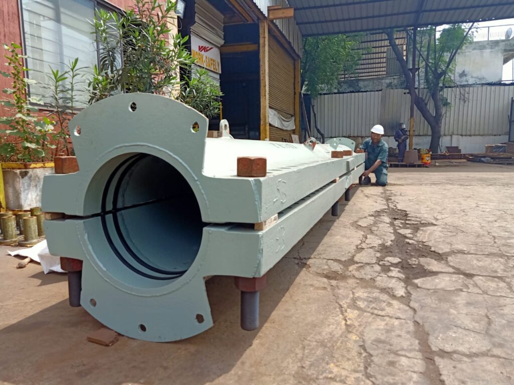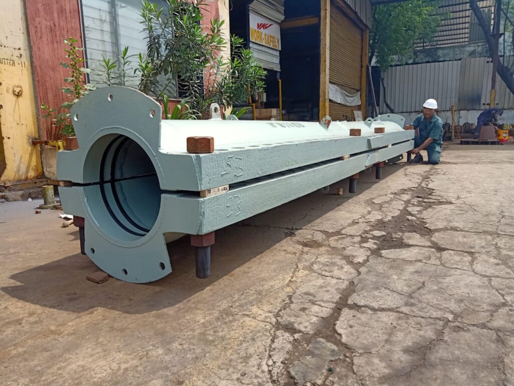 • VKVC recently manufactured a 6 meter long clamp for an oil and gas drilling client. The clamp was fabricated in a record time to have urgent response time in applications like leak sealing. VKVC prides itself in serving such requirements.
